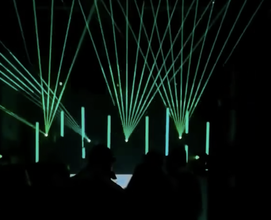 Moving heads, accent lighting, and atmospheric effects designed to complement the lasers and enhance the visual depth of the space.